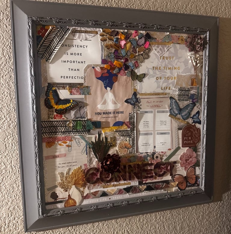 My vision boards from 2023 and 2024 still hang beside my bed. They guided me through career transitions, therapy breakthroughs, and life-changing decisions. They worked because they weren't about surface desires but they were about the deep, sustainable work of becoming the woman I knew I could be. The woman I wanted to be .